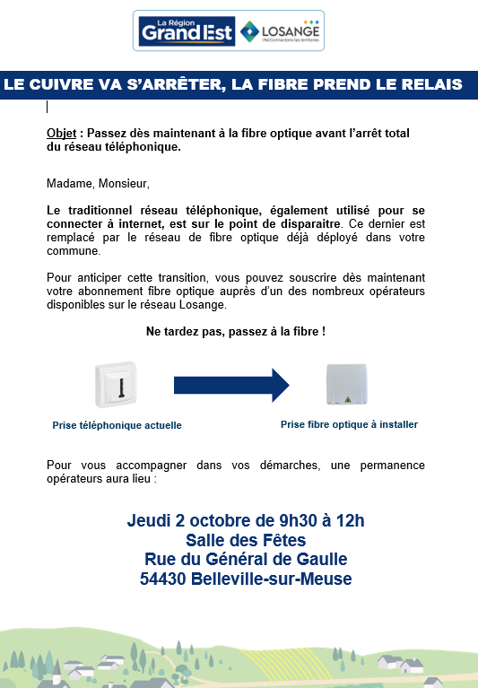 Vous vous interrogez concernant les démarches fibre ou la fin progressive du réseau cuivre (câble téléphonique et ADSL) ? Posez toutes vos questions lors de la prochaine permanence opérateurs :